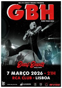 gbh + deaf devils reservar cartaz info geral Cartaz GBH Facebook Instagram Deaf Devils Facebook Instagram Informação Geral 7 MAR DATA – PORTAS – INICIO 12+ CLASSIFICAÇÃO ETÁRIA 20€ PRÉ-VENDA PROMOTOR HELL XIS AGENCY Facebook Instagram Reservar « Voltar à agenda